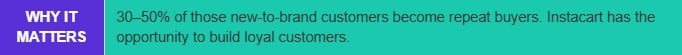 Unlike Google or Amazon, where bidding on your own brand name often just cannibalizes existing sales, Instacart advertising is highly effective at capturing customers who are searching generically typing “tortilla chips” rather than your brand name. This is why up to 90% of sales from Instacart ads come from customers who have never bought your brand on the platform before.