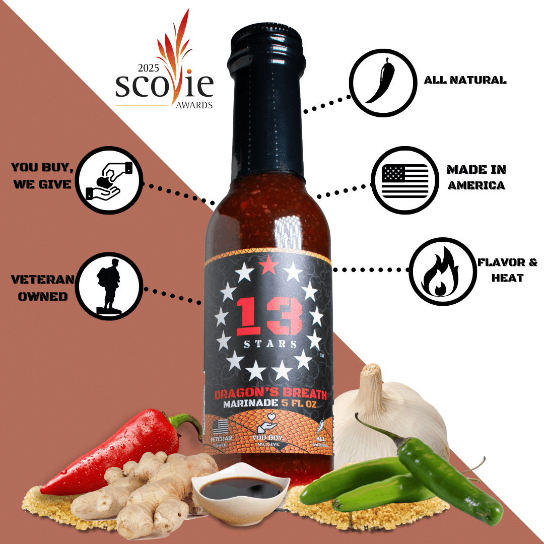 Veteran Owned & Operated Premium Hot Sauce company on a mission. A portion of our profits go back to US Veterans & First Responders.