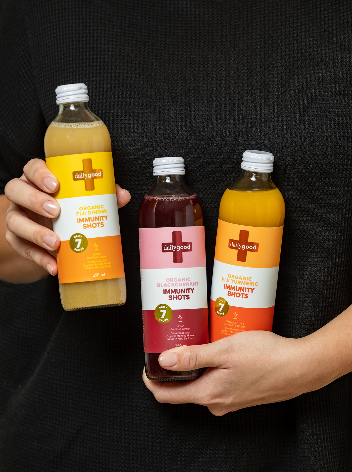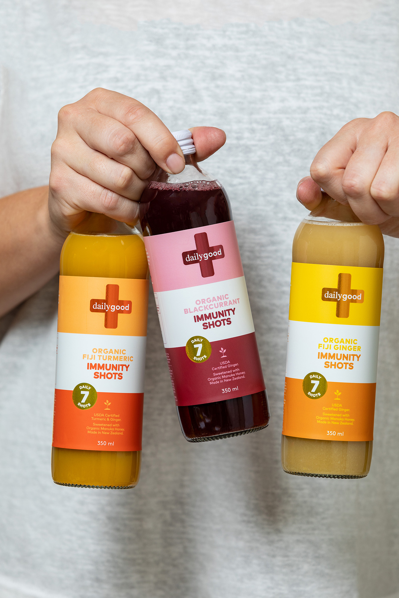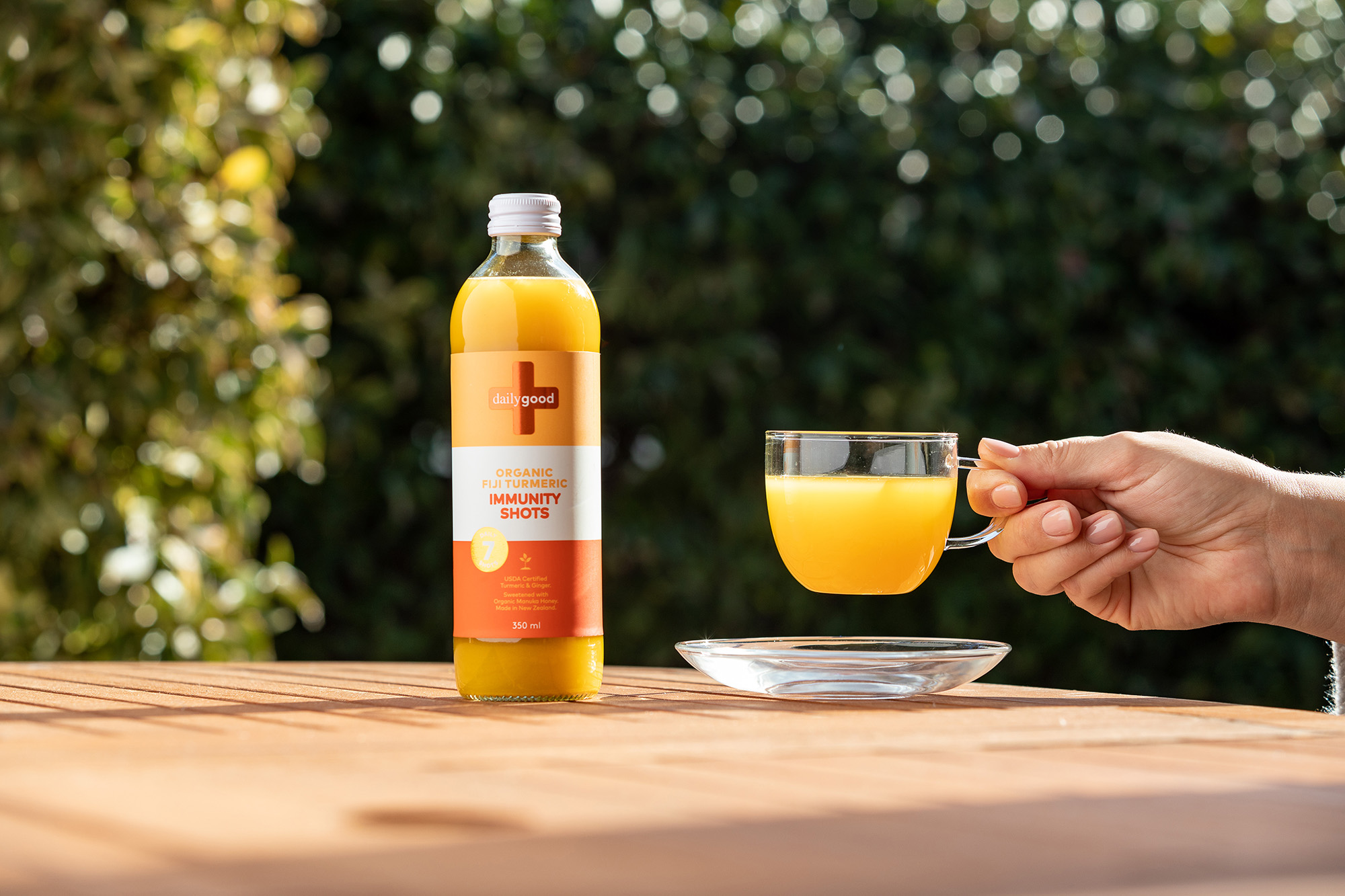 Daily Good immunity shots are formulated with natural and organic ingredients to boost your immunity supported by zinc and NZ mānuka honey. A natural immunity booster packed with natural and organic ingredients supported by zinc and NZ mānuka honey, providing a fully rounded health boost with turmeric to decrease inflammation and ginger to aid digestion. Each bottle includes 7 daily shots that can be taken neat or enjoyed diluted, in hot or cold water. Proudly made in New Zealand from local ingredients, plus USDA-certified organic turmeric and ginger sourced from Daily Good’s partner farm in Fiji, where the origins of the ingredients can be traced back to the very field that they were planted in. Gluten-free, dairy-free, organic and no added fillers or nasties. Supplemented food.