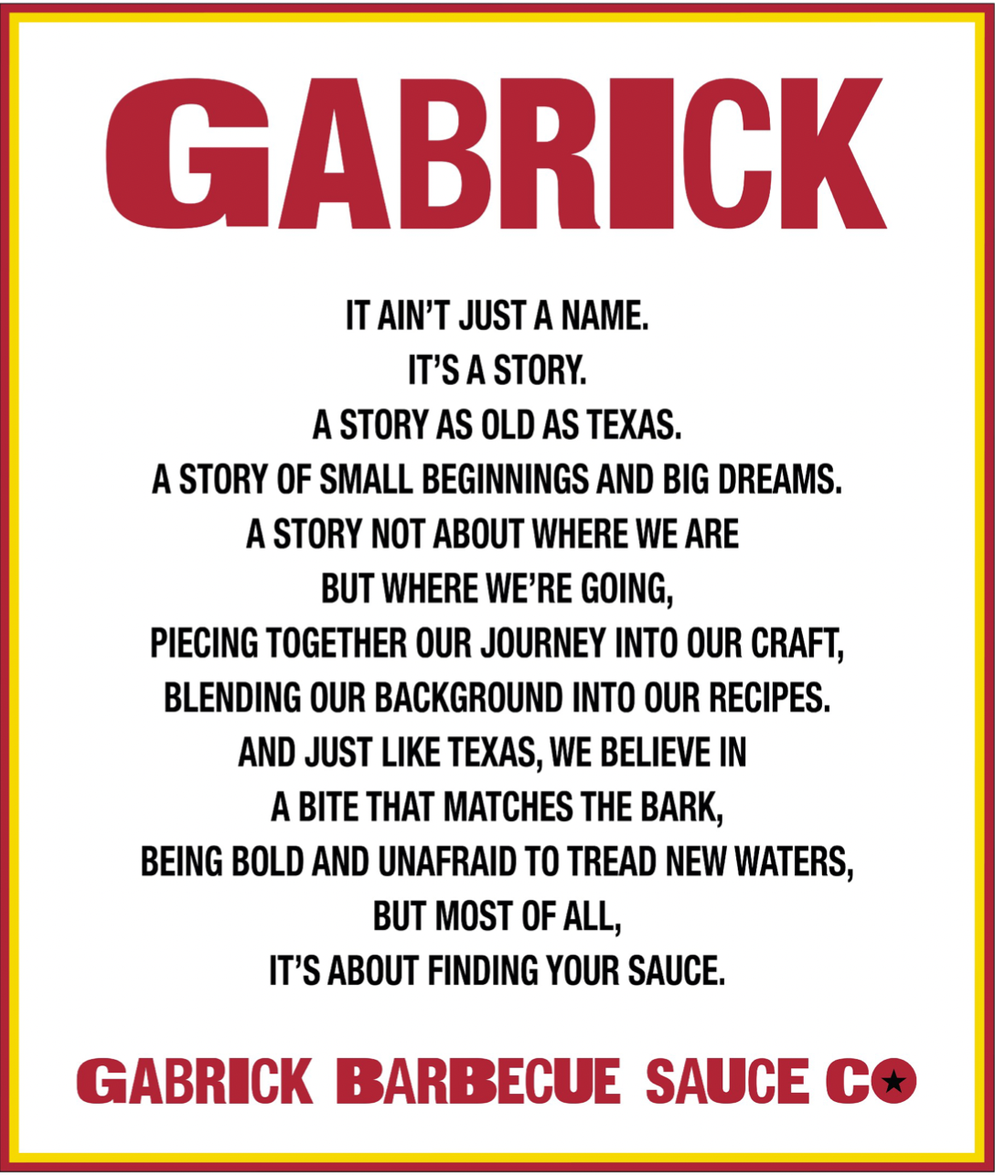 Gabrick BBQ Sauce Co. specializes in making the best store-bought Texas BBQ sauces. Find our products at your 230+ local H-E-B grocery stores, or 250+ reputable retailers around the USA, Canada and Europe. No HFCS, No Msg, No Red/Yellow dyes, No Junk. • Ships in an eco-friendly Glass bottle. • Wholesale BBQ Sauce available for restaurant suppliers and food service operators. • Texas BBQ Sauce available for event planners, meeting planners, corporate event planners and gift boxes that are looking for Texas BBQ Sauce gifts.