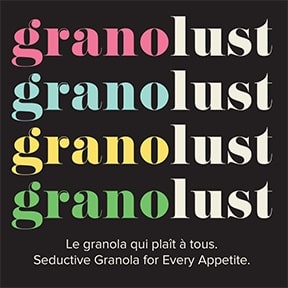 Granolust is the best organic, vegan & gluten-free PREMIUM granola you'll ever taste! Started (accidentally!) in 2017 in Montreal, Canada it's super clean, super sexy and super tasty, Granolust uses only the healthiest oils, no refined sugars and none of the additives or preservatives that most other granolas use. Our seductive packaging and branding really set us apart on the market and we are being carried in over 150 gourmet and health food stores, restaurants, hotels, gyms, juice bars etc...Seductive Granola for Every Appetite. Go ahead. Indulge. You deserve it. #trustthelust