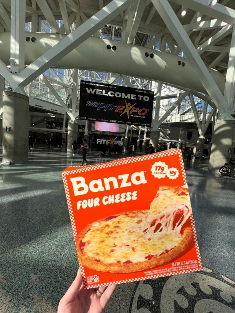 🎯 Banza, co-founded by Scott and Brian Rudolph, showcased its high-protein pizza at The Fit Expo