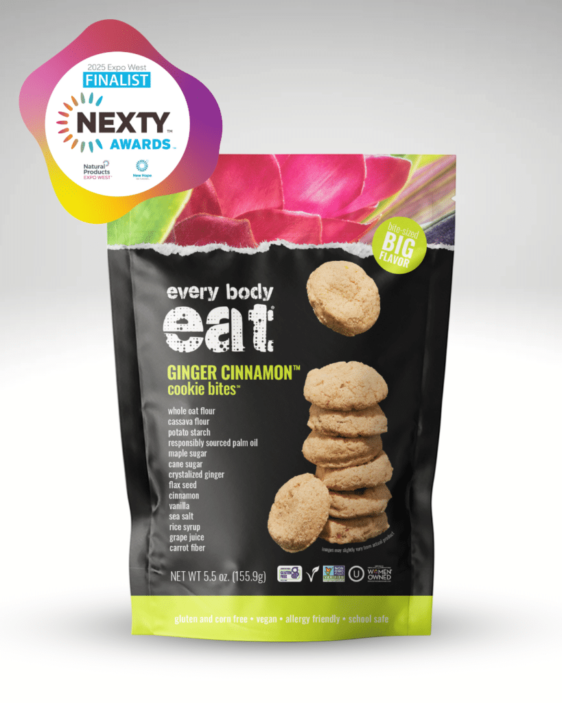 Every Body Eat, co-founded by Trish Thomas and Nichole Wilson, has been named a finalist for a NEXTY Award at Expo West 2025 with its Ginger Cinnamon Cookie Bites. As the first cookie brand to receive the Seed Oil Free Certified seal, the product aims to redefine clean-label snacking without compromising on taste.
