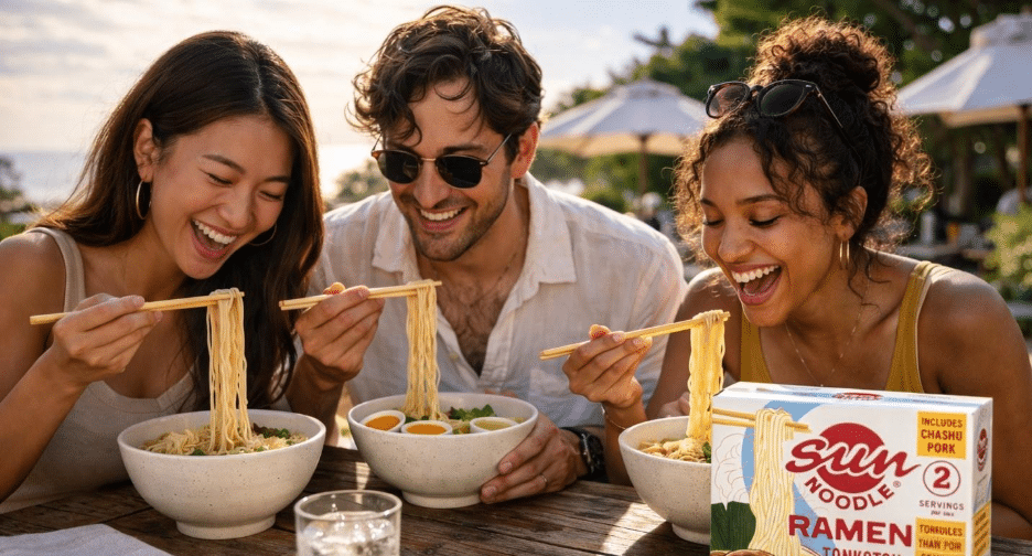 Sun Noodle, led by President Kenshiro Uki, is introducing a weather-based pricing campaign with retail and foodservice partners that automatically triggers discounts when skies are clear, using localized weather verification and in-store POS integrations to respond in real time to the way warmer weather can soften demand for hot noodle dishes. The concept is a clever merchandising and operations play, turning a seasonal challenge into a promotional hook while also encouraging both retailers and restaurant partners to rethink how noodle products can show up during spring and summer. In foodservice, the campaign will also support seasonal menu applications such as chilled ramen with soup and ice cubes in the traditional Yamagata style, helping the brand translate its product into warm-weather relevance instead of simply accepting a seasonal slowdown.