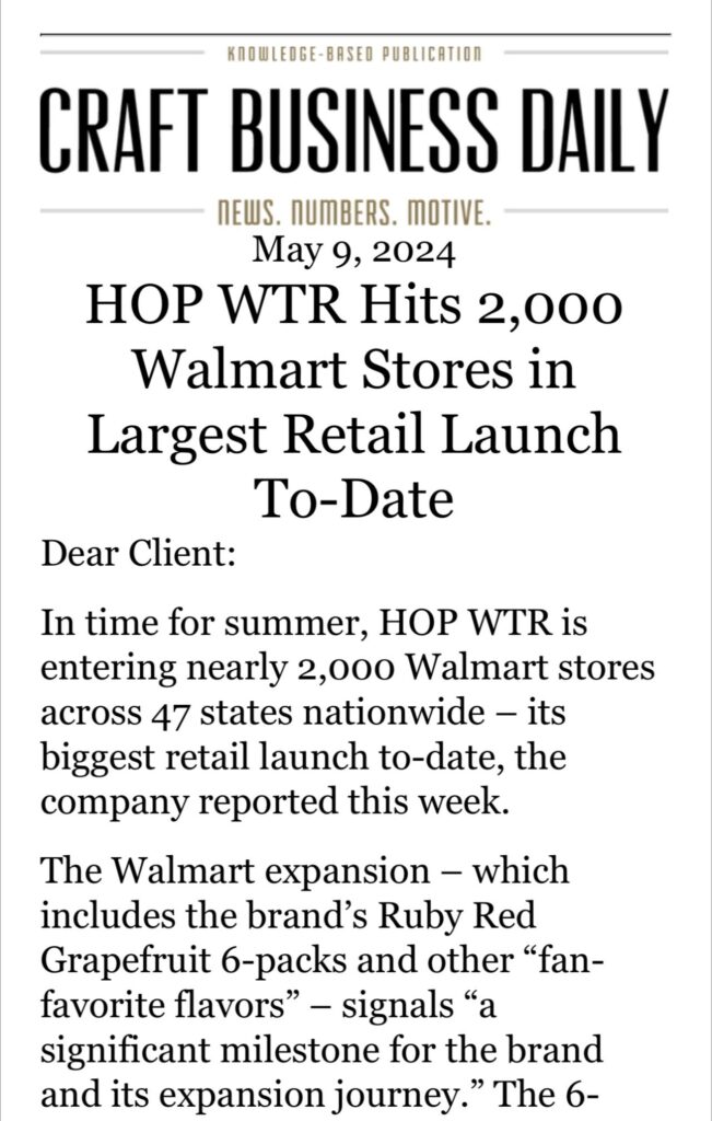 🍺 Jordan Bass is thrilled to launch Hop WTR in 2000 Walmart stores across the U.S., meeting a growing demand for non-alcoholic options.