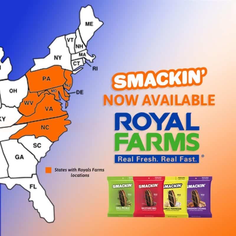 Brian Waddick’s Smackin’ Sunflower Seeds make a national splash at Royal Farms stores. After a successful launch, getting these seeds on Royal Farms’ shelves across the nation is just the beginning. Brian’s focus now turns to driving sales and expanding the reach of these beloved snacks.
