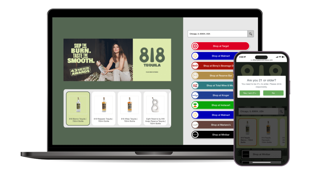 Each state has requirements on how many retailers need to be displayed within a shoppable ad. Whether an aggregator like Minibar, ReserveBar, or Instacart is considered one of those retailers also differs, depending on each brand’s standards. Pear unTied allows brands to customize their shoppable media experience to fit their unique policies, while dynamically displaying the compliant number of retailers based on the state in which the ad is being served. Plus: