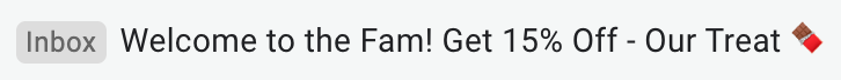 If you’re delivering a coupon in your first email, you can use your subject line to remind folks about the discount inside (a great way to motivate folks to open that email up).